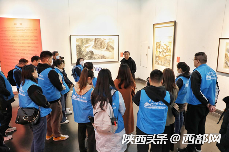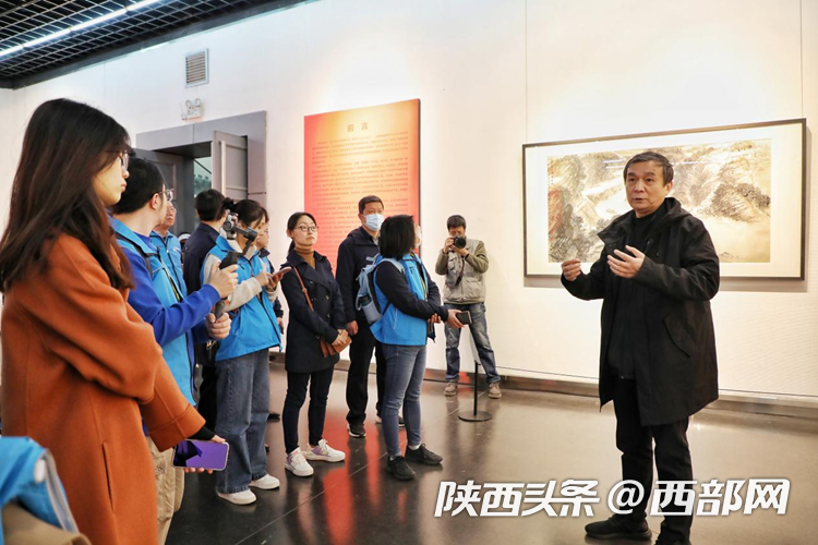 來自全國各地的媒體團(tuán)記者跟隨西安美術(shù)學(xué)院教授、博導(dǎo)、美術(shù)評(píng)論家程征的講解,詳細(xì)了解這個(gè)扎根西北的藝術(shù)畫派傳承與發(fā)展的歷史脈絡(luò)。