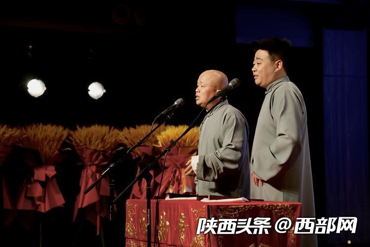 “我們長(zhǎng)安的口音,四個(gè)字——生冷蹭倔?!薄罢O,你說(shuō)得沒(méi)錯(cuò)?!币粡堊雷?,兩架話筒,在西安青曲社的相聲舞臺(tái)上,兩個(gè)穿著長(zhǎng)袍馬褂的相聲演員把包袱甩得叮當(dāng)響。在兩人配合默契的捧逗之間,現(xiàn)場(chǎng)歡樂(lè)的氛圍被推向了最高潮。整場(chǎng)演出高潮迭起、精彩紛呈,博得了臺(tái)下媒體團(tuán)記者的陣陣掌聲與喝彩聲。