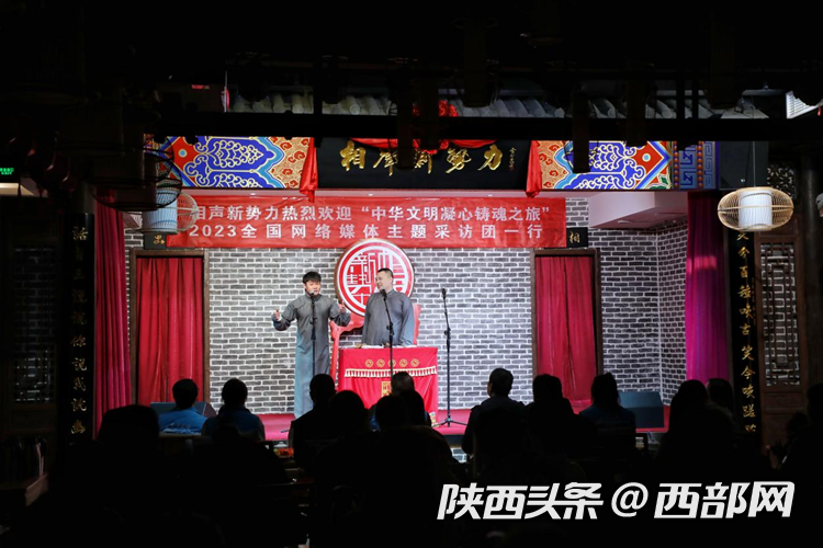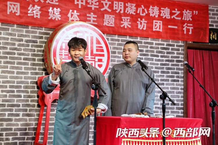 西部網訊(記者郭佳欣劉望)相聲新勢力就是陜西相聲里的新秀。4月4日,這個年輕曲藝廠牌的相聲演員們在舞臺上說學逗唱,為“中華文明凝心鑄魂之旅”2023全國網絡媒體主題采訪媒體團記者們帶來了一場有趣有料的視聽盛宴。