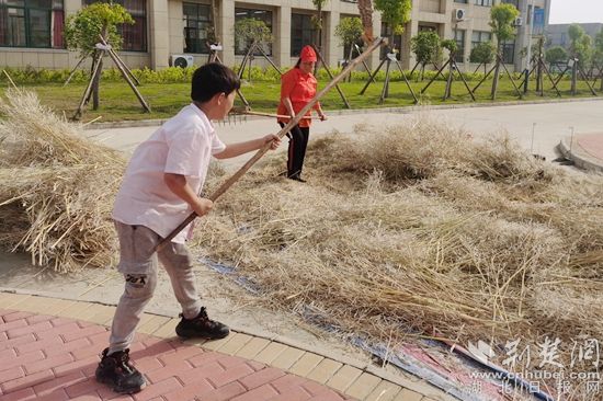 經(jīng)過幾天的曝曬,油菜殼已經(jīng)非常干脆,菜莢里的菜籽“呼之欲出”。5月16日,永河小學組織部分學生開展“大豆脫粒”勞動實踐活動。