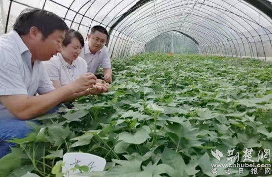 “針對紅安苕因長期種植和無性繁殖而導(dǎo)致的產(chǎn)量降低和商品率低的問題,蔡興奎迅速組建博士團(tuán)隊,引進(jìn)和創(chuàng)新集成適合當(dāng)紅安的新技術(shù)、新模式,直接將科技示范田建在農(nóng)民地里,讓農(nóng)民近距離看到示范效果?!币Ψ逭f。