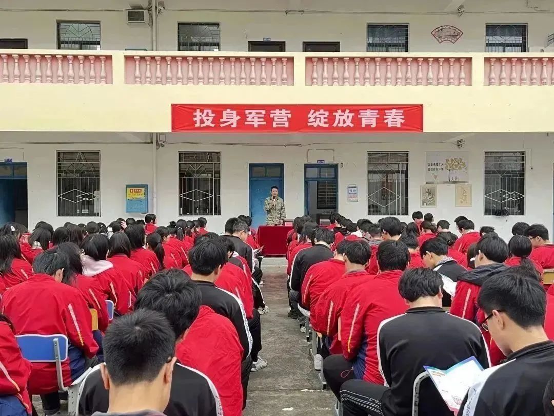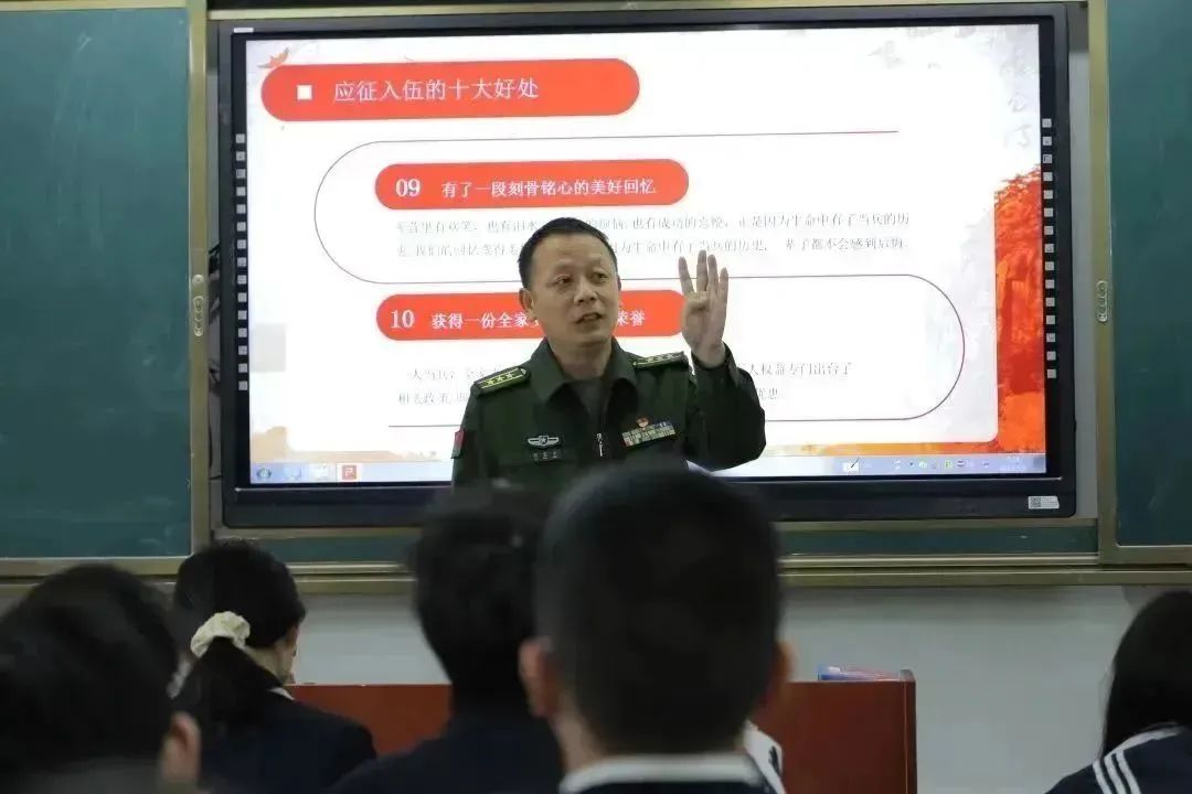 人武部何寶平政委結(jié)合自身從軍三十年的體會,暢談兵之初經(jīng)歷,鼓勵大家踴躍報名參軍、報考軍校,同學(xué)們聽得非常專注。6月下旬填報高考志愿期間,人武部將再次來學(xué)校進(jìn)行宣傳。