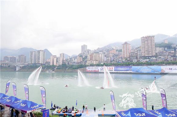 水上飛人表演贏得現(xiàn)場(chǎng)陣陣歡呼。華龍網(wǎng)-新重慶客戶端 黃歡 攝