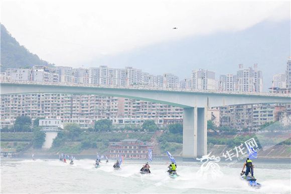 來自全國(guó)各地的參賽選手騎著摩托艇入場(chǎng)。華龍網(wǎng)-新重慶客戶端 黃歡 攝