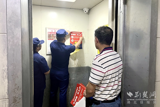 對此,檢查人員要求物業(yè)管理單位要積極通過業(yè)主群發(fā)送安全警示、入戶宣傳提示等方式加強宣傳教育,同時加強日常巡查檢查,及時消除隱患。隨后,檢查人員和物業(yè)人員在小區(qū)宣傳欄、電梯內、樓道口等位置張貼電動車消防宣傳海報,提示居民規(guī)范使用電動車。