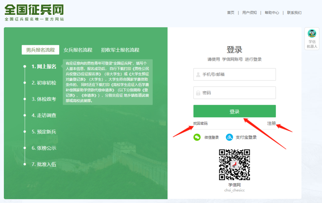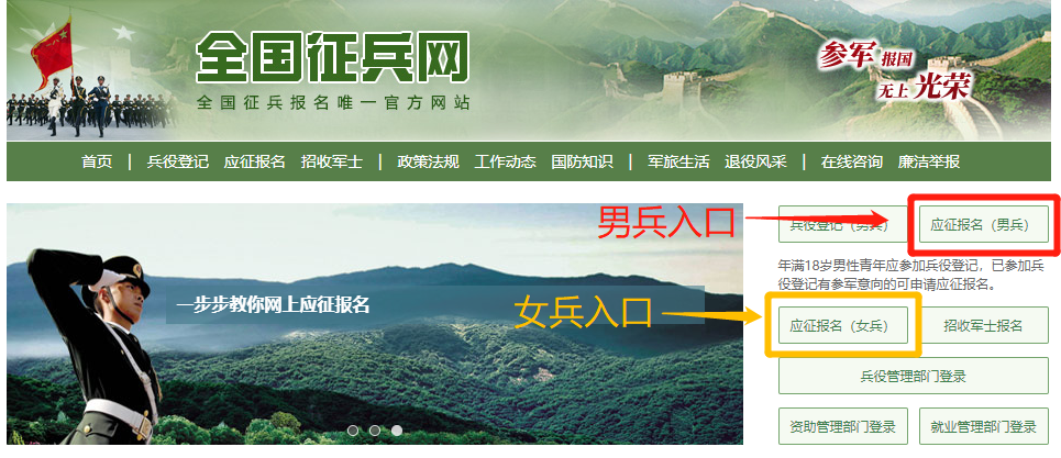 進(jìn)入全國征兵網(wǎng),選擇相應(yīng)的報(bào)名入口,點(diǎn)擊應(yīng)征報(bào)名,將會(huì)跳轉(zhuǎn)到登錄界面。