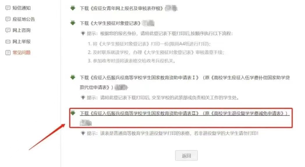 《應(yīng)征入伍服兵役高等學(xué)校學(xué)生國家教育資助申請(qǐng)表》分為兩類: