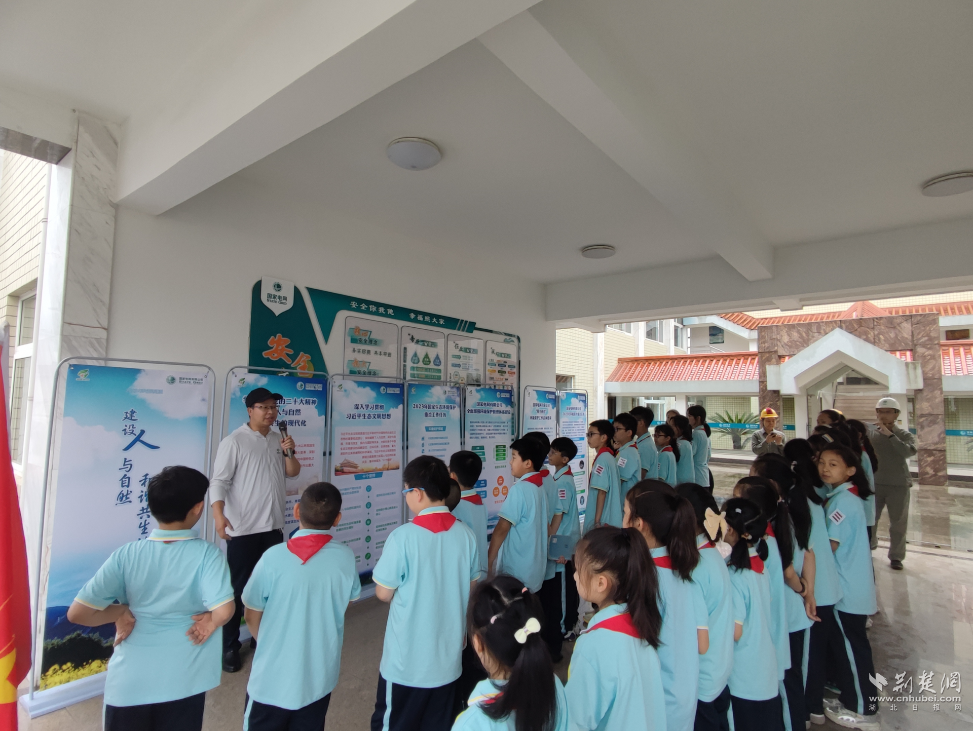 活動邀請了十堰市六一小學師生、十堰市生態(tài)環(huán)境局張灣區(qū)分局等代表共計40余人走進柏林220千伏變電站。代表們在國網十堰供電公司工作人員的帶領下,對柏林220千伏變電站站內設備進行了參觀。供電工作人員用通俗易懂的語言講解了站內主要電氣設備及功能、電能傳輸?shù)葍热?,參觀代表“零距離”了解了電力傳輸過程、電力工程建設選址以及運行維護等知識。