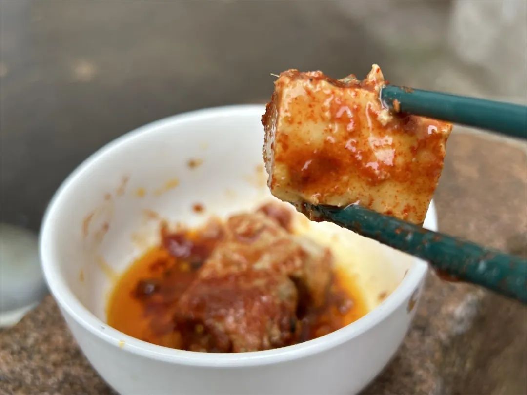 夾一筷沾滿紅油的腐乳