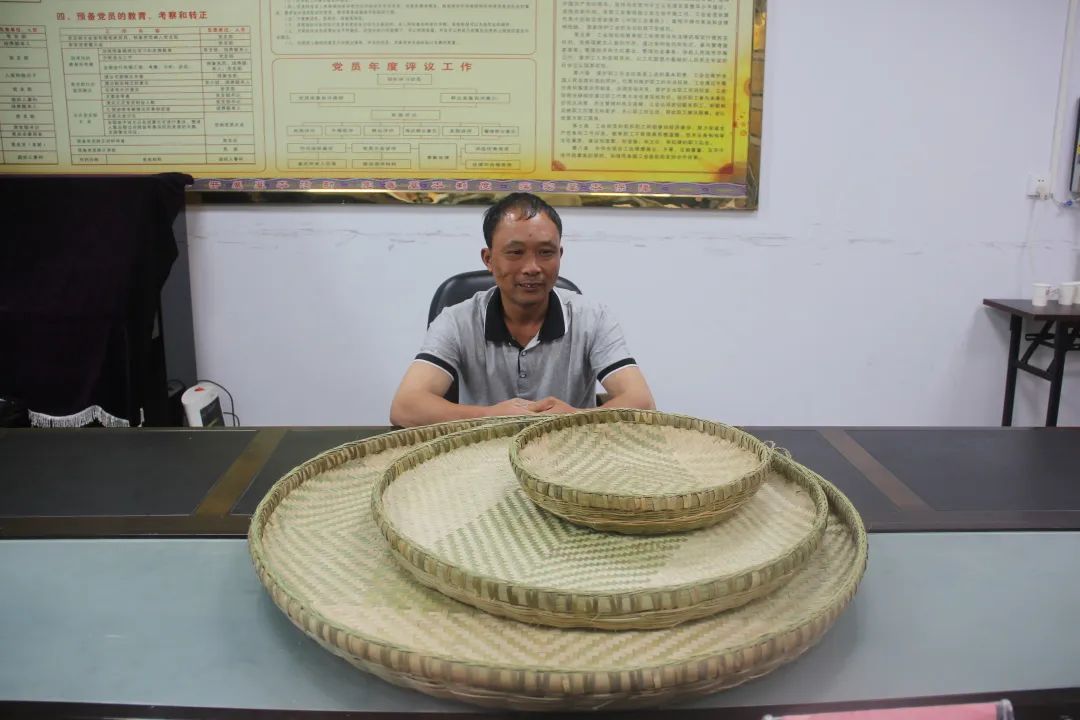 芭蕉侗族鄉(xiāng)鐘引森展示自己的竹編作品