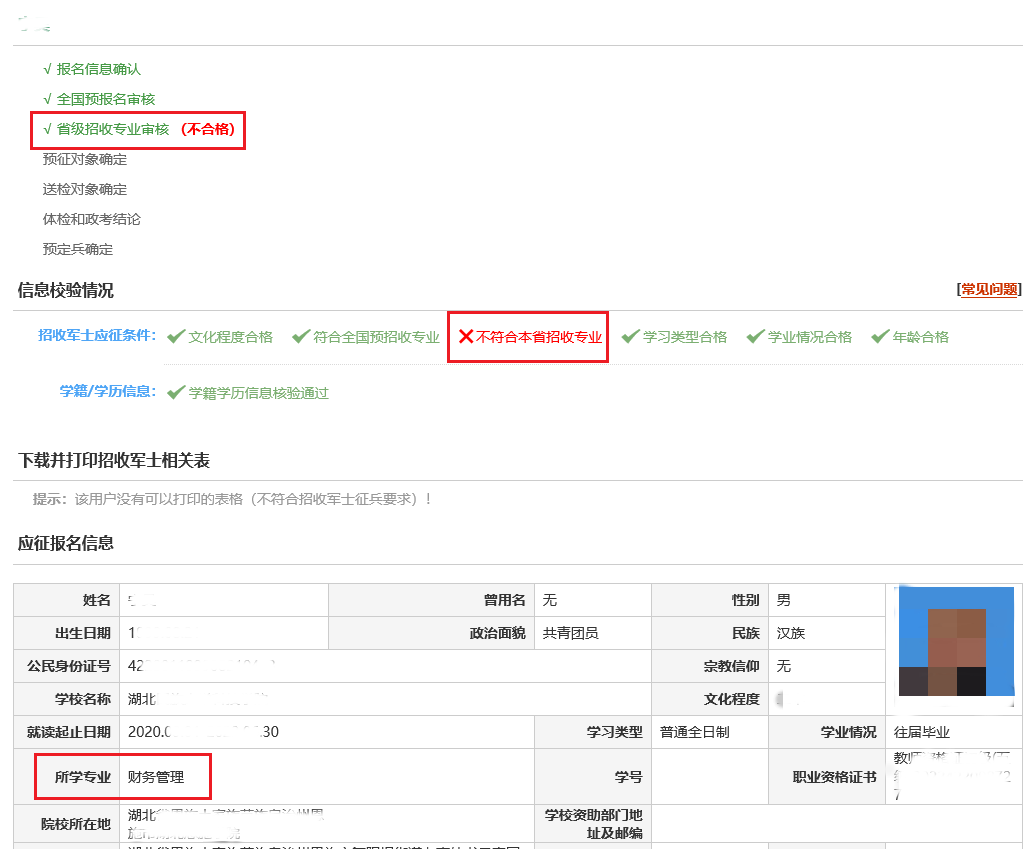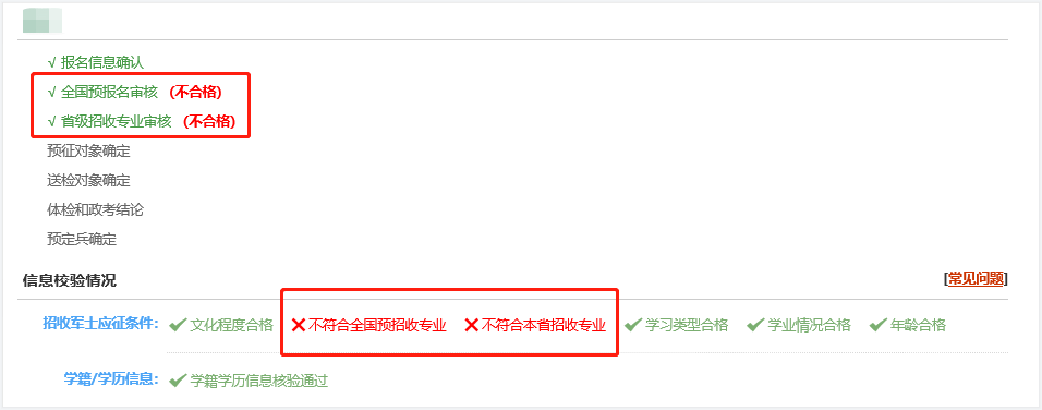不符合招收專業(yè)這種情況分為兩類,第一類是極少數(shù)青年預(yù)報(bào)名時就已經(jīng)不符合全國招收專業(yè):