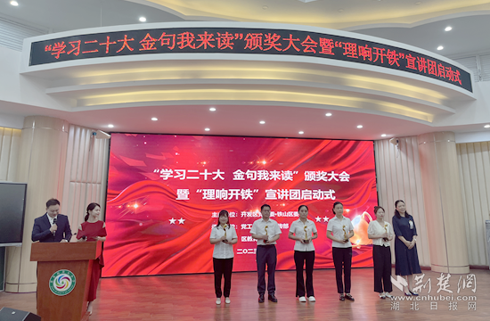 荊楚網(wǎng)(湖北日報網(wǎng))訊(記者 呂鑒蕾 通訊員 張燦華 胡娜)7月13日上午,黃石開發(fā)區(qū)·鐵山區(qū)“學習二十大 金句我來讀”頒獎大會暨“理響開鐵”宣講團啟動式在黃金山第五小學舉行。