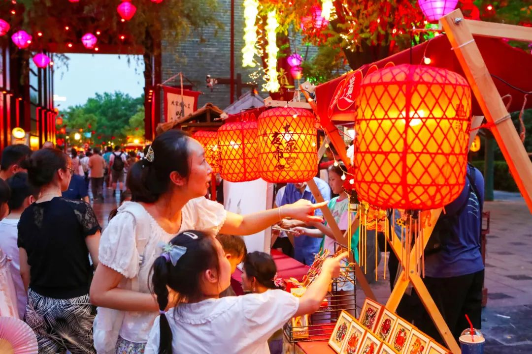 一入夜,這里的百萬(wàn)盞花燈齊齊點(diǎn)亮,可汴河游船欣賞、可漫步園中拍照,上善門前每晚都有東京夜市,更是還原了北宋東京城的繁華夜晚!