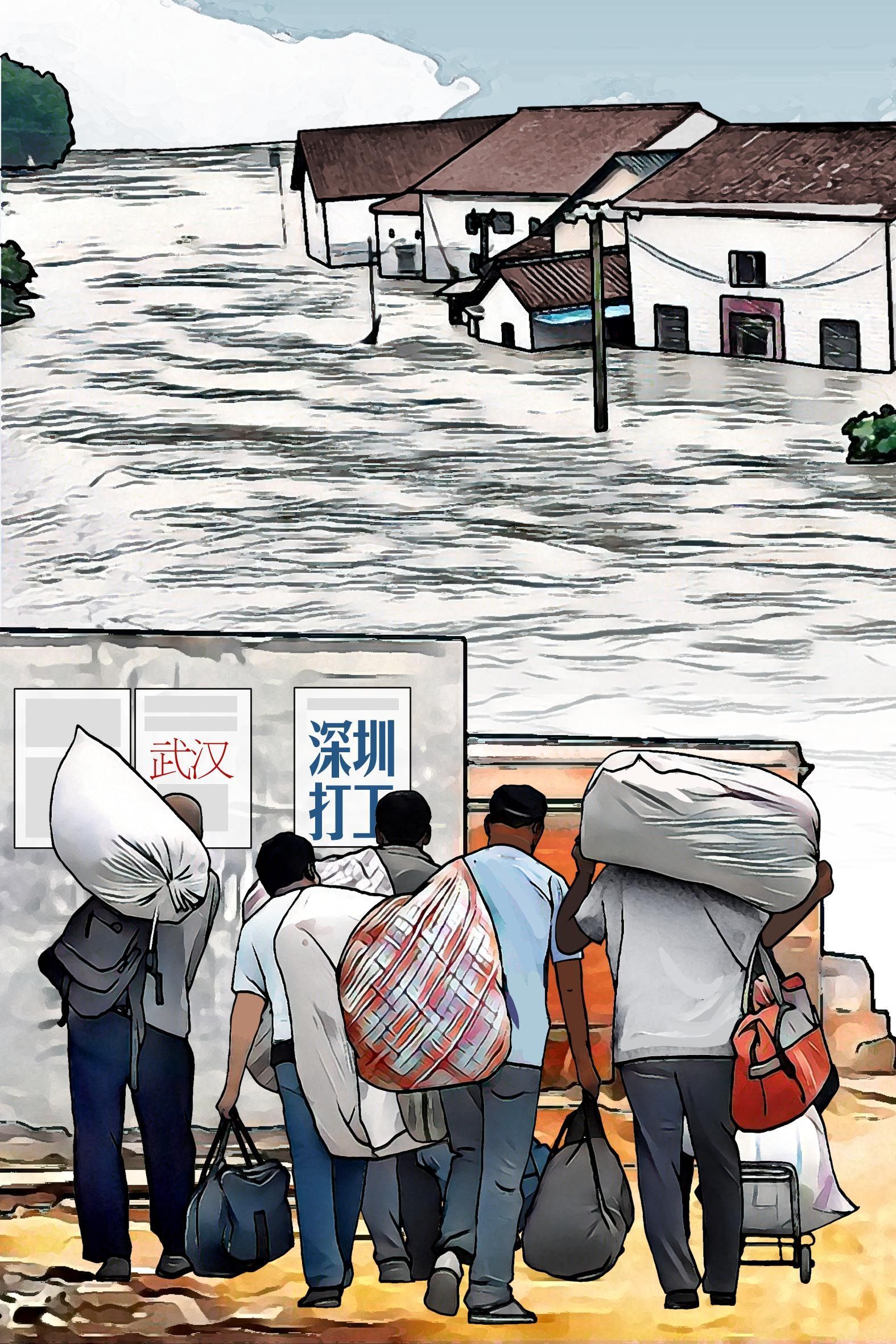 1996年至1998年,三年水患,許多村民顆粒無(wú)收、血本無(wú)歸。連年歉收后,鄉(xiāng)親們逐漸對(duì)種田失去信心。不少村民賣(mài)掉耕牛,閉門(mén)鎖戶(hù),前往廣州、深圳、武漢等地打工。