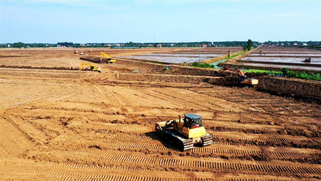 麻豪口鎮(zhèn)是湖北省蝦稻產(chǎn)業(yè)示范基地,每年11月至次年6月放水養(yǎng)蝦,7至9月種植晚稻。馮中山介紹,項(xiàng)目部與村民充分協(xié)商,抓住“空檔期”,突擊增加設(shè)備、人員,冒著高溫集中施工,30天平整土地1萬(wàn)多畝。