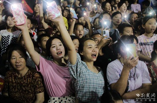 傍晚,華燈初上,匡河小學(xué)籃球場(chǎng)熱鬧非凡,球場(chǎng)周圍群眾揮舞著國(guó)旗,喜笑顏開,加油聲、喝彩聲一浪高過一浪。