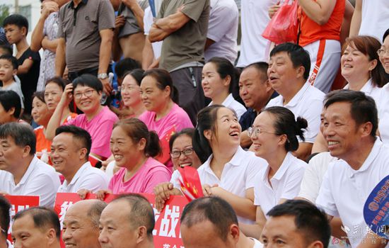 “心中有丘壑,眉目作山河,山河,既是三個(gè)村的名字組合,又取自‘湖光山色,至善匡河’?!?9時(shí)30分許,開幕式開始,主持人依次介紹參賽隊(duì)伍,伴隨著激昂的旋律,運(yùn)動(dòng)員、裁判員精神抖擻進(jìn)入會(huì)場(chǎng),現(xiàn)場(chǎng)觀眾用熱烈的掌聲歡迎他們的到來。