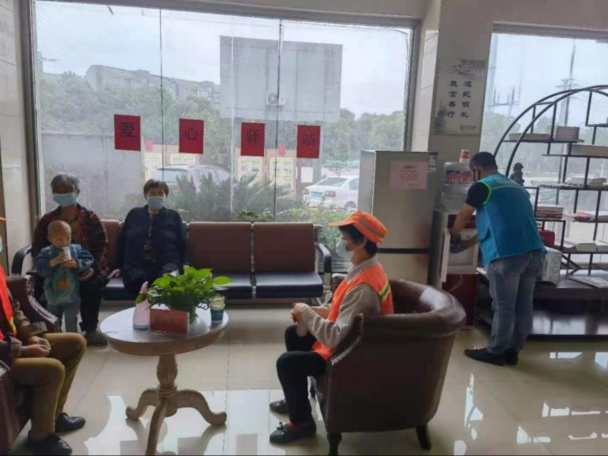 服務(wù)內(nèi)容:為環(huán)衛(wèi)工人、城管、交警、快遞小哥、出租車(chē)司機(jī)提供臨時(shí)休息、飲水、乘涼、熱飯、避雨、充電、醫(yī)療急救包等便民服務(wù)。舉辦“小涢朵”暑期公益課堂,開(kāi)展家庭教育、故事分享、心理?yè)嵛?、作業(yè)輔導(dǎo)、書(shū)法、美術(shù)、趣味手工等活動(dòng)。