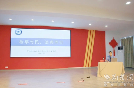 荊楚網(wǎng)(湖北日?qǐng)?bào)網(wǎng))訊(通訊員丁元中)近日,由鄂城區(qū)檢察院、鄂州楚商聯(lián)合會(huì)聯(lián)合舉辦的主題為《檢察為民,法典同行》的“法治講堂進(jìn)社區(qū)活動(dòng)”在鄂州市鄂城區(qū)鳳凰街道濱湖社區(qū)拉開帷幕,活動(dòng)吸引了60余名社區(qū)居民前來聆聽。