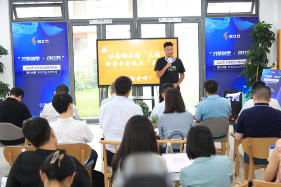 荊楚網(wǎng)(湖北日報網(wǎng))訊(通訊員 李婧 容晨馨)7月25日下午,由湖北省人力資源和社會保障廳指導(dǎo),湖北省人才事業(yè)發(fā)展中心主辦的第234期“才聚荊楚·創(chuàng)立方”大學(xué)生創(chuàng)業(yè)路演周會在華中農(nóng)業(yè)大學(xué)綜合服務(wù)大樓舉辦。本次活動有10個來自華農(nóng)的優(yōu)秀項目進(jìn)行路演,主要涉及食品安全、生物醫(yī)藥、人工智能、農(nóng)業(yè)育種、生態(tài)養(yǎng)殖等多個領(lǐng)域。活動特邀國家科技部專家?guī)鞂<医手?、教育部首批?yōu)秀創(chuàng)新創(chuàng)業(yè)導(dǎo)師張福宏擔(dān)任創(chuàng)業(yè)導(dǎo)師,來自光匯同道、圖易(武漢)信息技術(shù)、久銀控股、達(dá)晨財智、湖北日報基金等20家知名機構(gòu)的投資人及青年創(chuàng)業(yè)者,積極展示高??蒲袆?chuàng)新成果,進(jìn)一步激發(fā)大學(xué)生創(chuàng)新創(chuàng)業(yè)熱情,助力高校初創(chuàng)項目發(fā)展壯大。