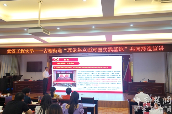 荊楚網(wǎng)(湖北日報網(wǎng))訊(通訊員丁元中)7月25日上午,武漢工程大學(xué)馬克思主義學(xué)院院長曹勝亮一行17名專家教授到鄂城區(qū)古樓街道“理論熱點面對面實踐基地”開展共同締造宣講活動。