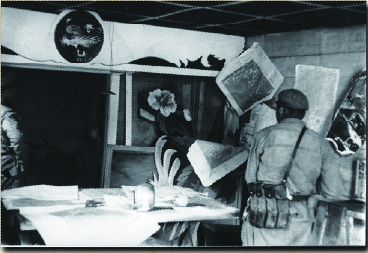 1953年7月13日,志愿軍第68軍203師607團(tuán)偵察排副排長楊育才帶領(lǐng)偵察班,化裝成南朝鮮軍,向敵縱深穿插。路上冒雨涉險(xiǎn),抓俘虜,得口令,巧妙通過敵人崗卡,直搗二青洞南朝鮮首都第1團(tuán)(“白虎團(tuán)”)團(tuán)部,繳獲李承晚親自授予“白虎團(tuán)”的“優(yōu)勝”虎頭旗,打亂了該團(tuán)的指揮體系。