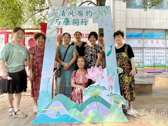 在“沉浸式”聽完講解員的講解后,居民朋友在“清風(fēng)有約,與廉同行”廉潔打卡點(diǎn)拍照留念。
