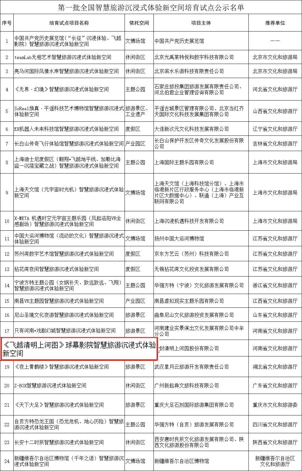 第一批全國智慧旅游沉浸式體驗新空間培育試點名單