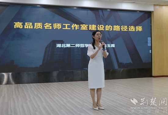 開班儀式結(jié)束后,湖北第二師范學(xué)院教授、基礎(chǔ)教育研究中心主任、特級教師、湖北名師涂玉霞作題為《高品質(zhì)工作室建設(shè)的路徑選擇》的主題講座。她圍繞工作室文化建設(shè)、運行方式、成果彰顯三大塊,結(jié)合名師工作室積累的豐富案例、豐厚經(jīng)驗和豐碩成果,系統(tǒng)地分享了高品質(zhì)工作室建設(shè)路徑、策略與方法。