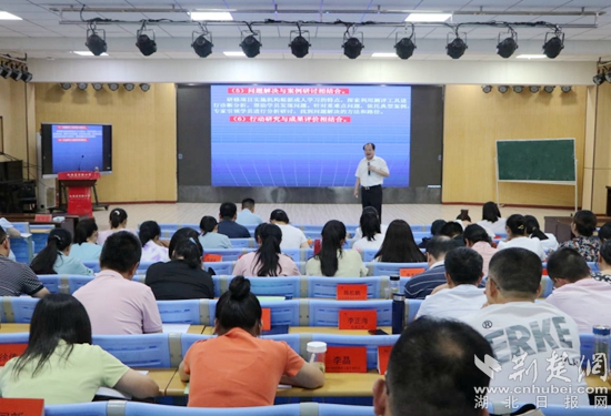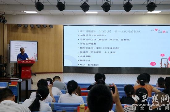 8月16日上午,黃石八中總校長、特級教師、正高級教師郭茂榮作題為《務(wù)教育之本 悟成長之道—教師工作坊建設(shè)的實踐與思考》的主題講座。他通過成長經(jīng)歷和典型案例,運用風(fēng)趣的語言深刻詮釋了“立德樹人是教育之本,知其心是教師之本,悟其道是成長之要”,還交流了教師工作坊建設(shè)、運行、管理、評價等方面的經(jīng)驗。