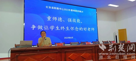 紅安縣職教中心2023年暑期集訓(xùn)以“重師德,強(qiáng)師能,爭做讓學(xué)生終生懷念的好老師”為主題,培訓(xùn)為期3天,包含師德師風(fēng)宣講、法規(guī)學(xué)習(xí)、中職班主任能力大賽賽項(xiàng)解析及備賽技巧等多個學(xué)習(xí)內(nèi)容,給全體教職工充電賦能,為學(xué)校高質(zhì)量發(fā)展增添新動能。