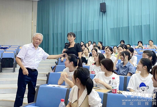 當(dāng)天上午的培訓(xùn)邀請(qǐng)全國(guó)優(yōu)秀教師、湖北省特級(jí)教師桂賢娣為學(xué)員授課。桂老師以《弘揚(yáng)師德潛心育人》為題,向青年教師傳授自己從事教學(xué)工作41年間以情感育人、智慧育人的經(jīng)驗(yàn)和方法。她結(jié)合自身經(jīng)歷,用幽默的語(yǔ)言和豐富的肢體動(dòng)作講述一個(gè)個(gè)教育故事,讓老師們?cè)谳p松愉悅的氛圍中感受到了她對(duì)教師這份職業(yè)的認(rèn)同感、滿足感、幸福感。