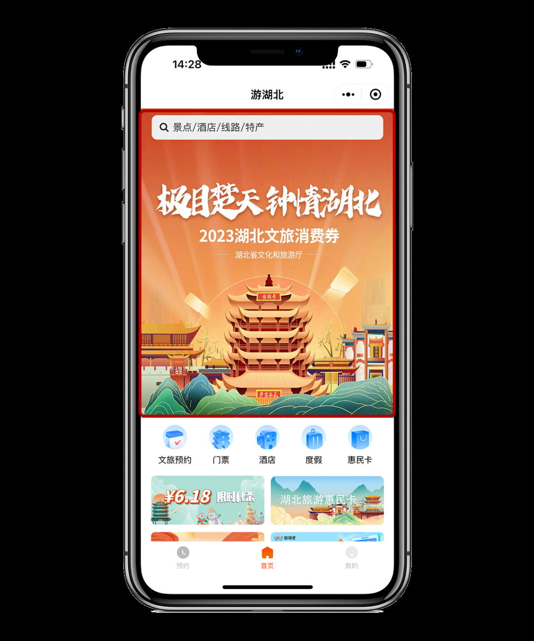 第一步:打開(kāi)“游湖北”APP/小程序——點(diǎn)擊進(jìn)入“極目楚天 鐘情湖北”文旅消費(fèi)券活動(dòng)
