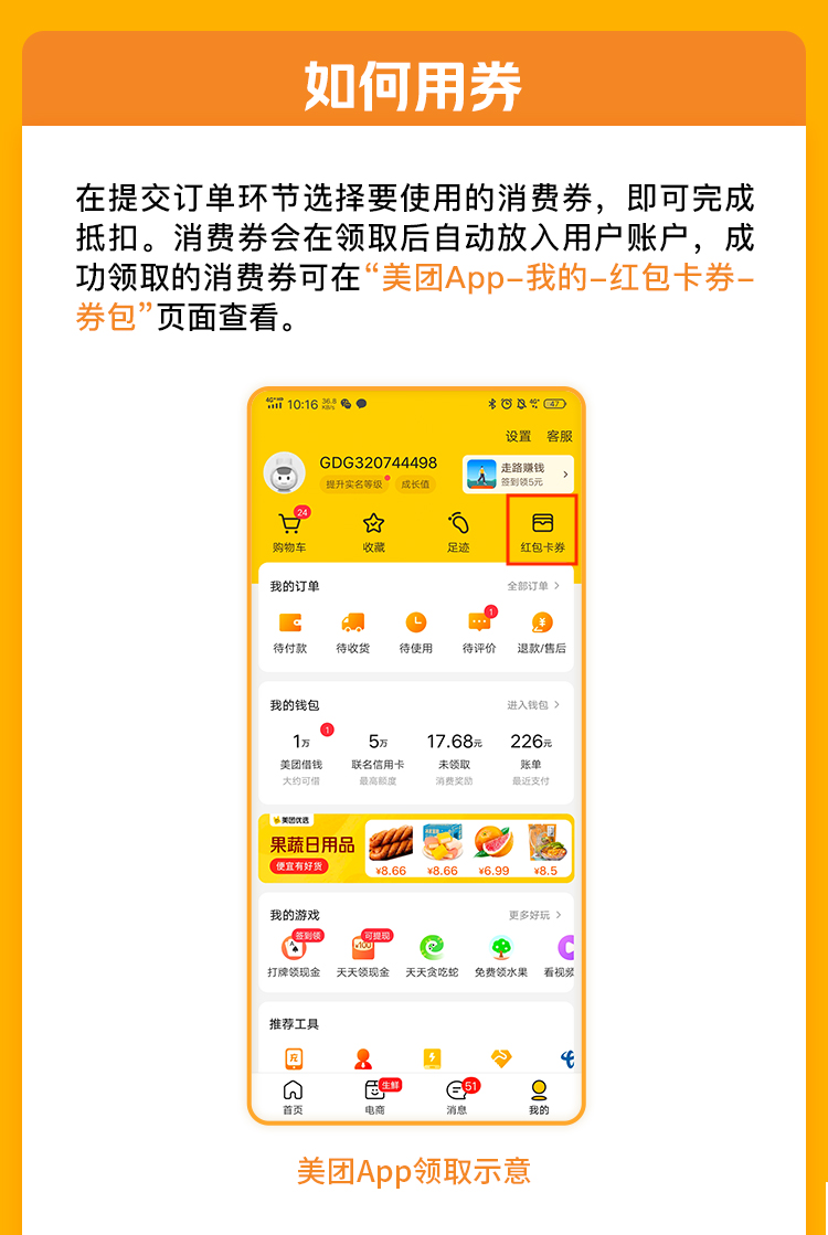 3.用券要求。消費(fèi)者在下單購(gòu)買(mǎi)或支付消費(fèi)券使用范圍內(nèi)的產(chǎn)品和服務(wù)時(shí),應(yīng)在享受平臺(tái)和商戶(hù)已有優(yōu)惠折扣后,于最后支付環(huán)節(jié)使用消費(fèi)券。
