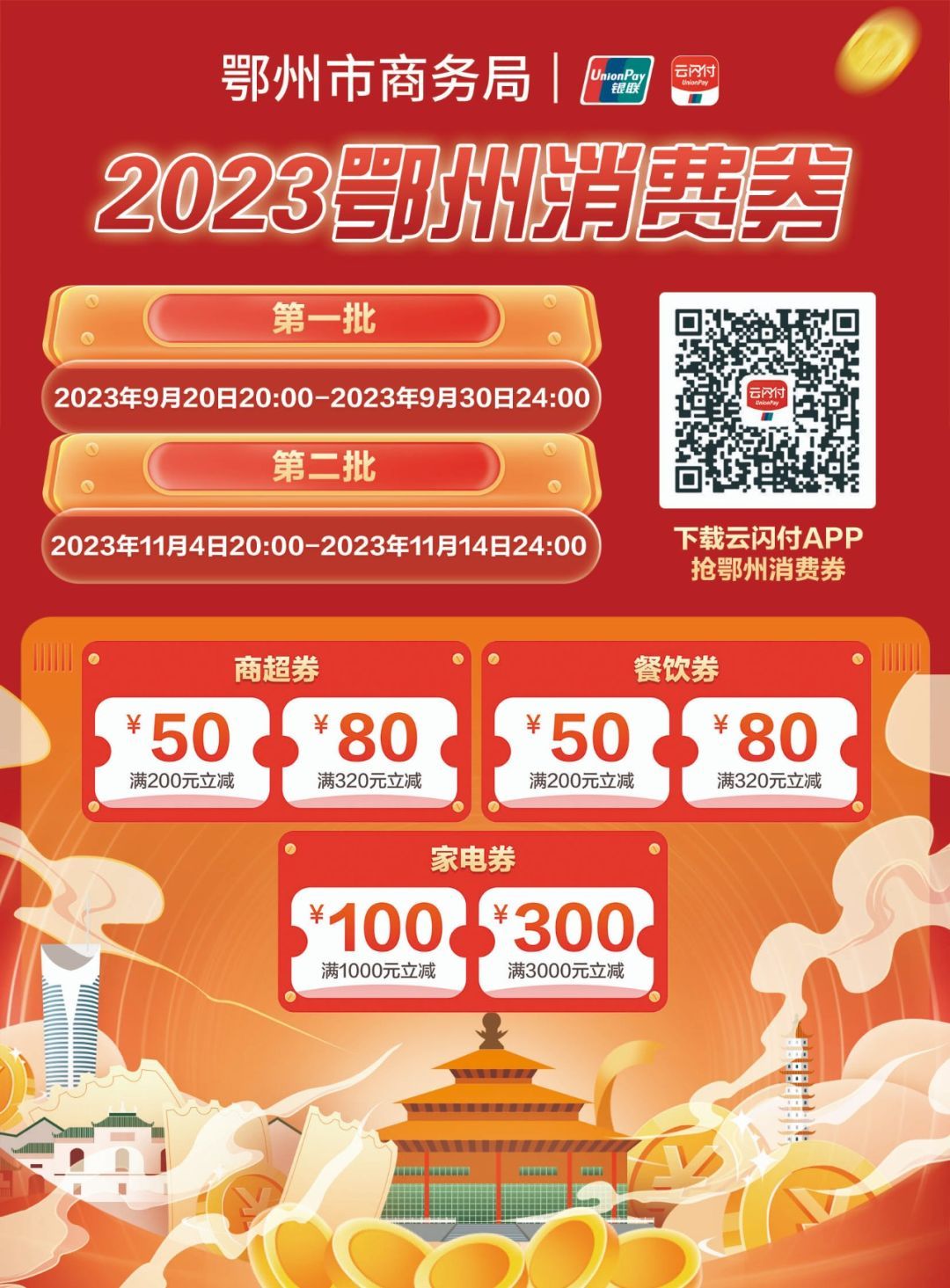 鄂州1400萬(wàn)元零售、餐飲消費(fèi)券