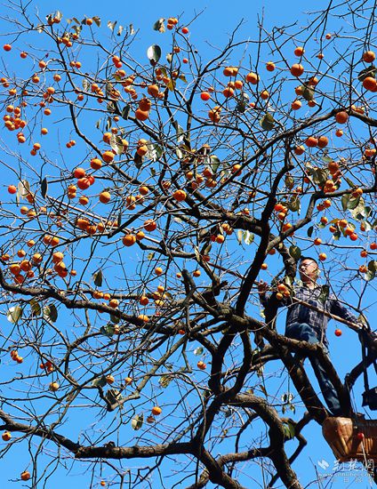 柿農(nóng)正在摘柿子。胡小軍 攝