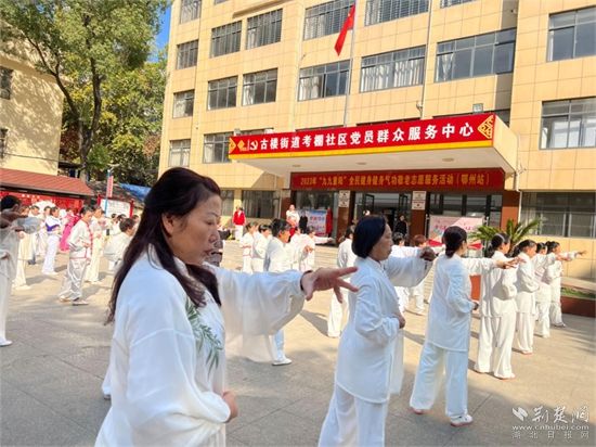 此外,開幕式當天時值“九九重陽節(jié)”,為推進老年人身體健康,國家體育總局健身氣功管理中心特聘請賽事裁判長、武漢體育學(xué)院武術(shù)學(xué)院賈海如副教授,在鄂州市考棚社區(qū)開展2023 年“九九重陽”全民健身健身氣功敬老志愿服務(wù)活動。