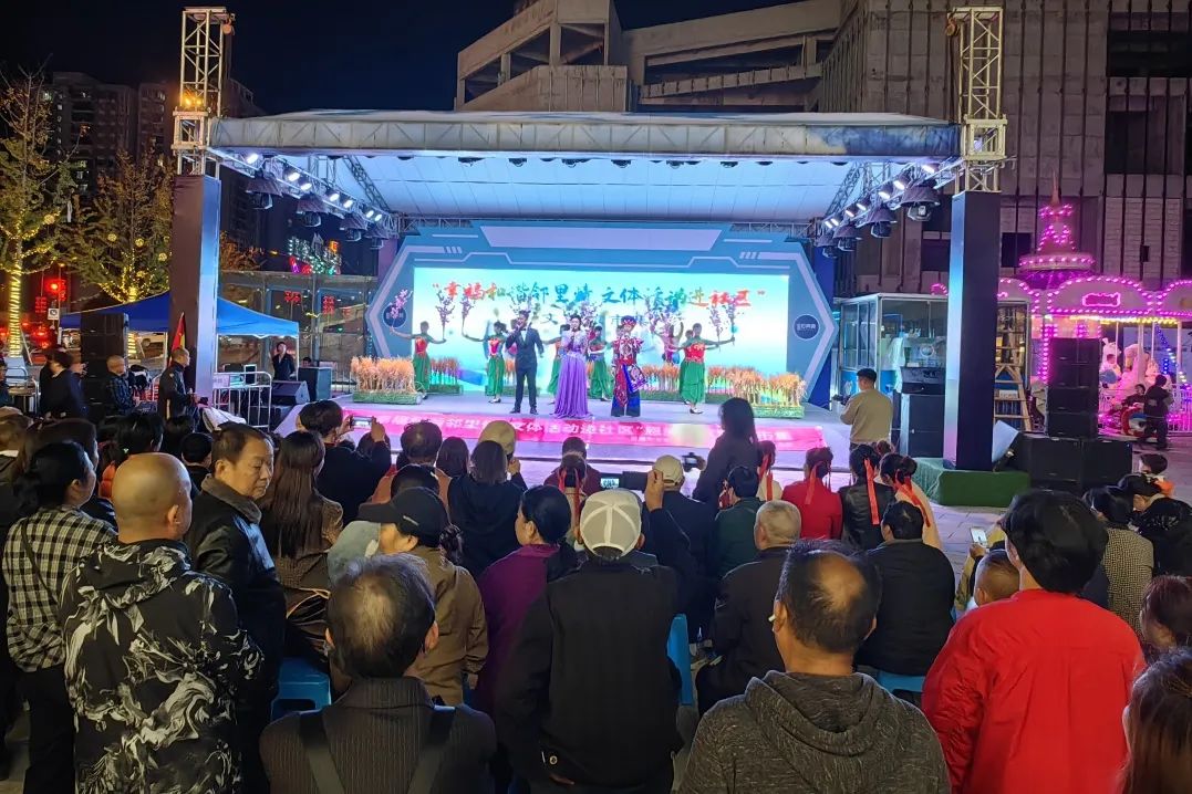 當(dāng)天晚上,市非遺中心與社區(qū)居民在和潤城廣場共同上演了一場精彩絕倫的文藝演出,讓居民群眾在家門口享受到精彩的“文化大餐”。演出在歌舞《山笑水笑人歡笑》拉開了序幕,文藝節(jié)目形式多樣、內(nèi)容豐富,特別是由社區(qū)居民表演的《書簡舞》、《平衡術(shù)》等節(jié)目,展現(xiàn)了社區(qū)居民良好的精神面貌。
