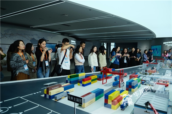 在重慶內(nèi)陸國(guó)際物流樞紐展示中心,記者們看到了重慶市由內(nèi)陸腹地到開放高地的轉(zhuǎn)變,樞紐與城市協(xié)同發(fā)展。