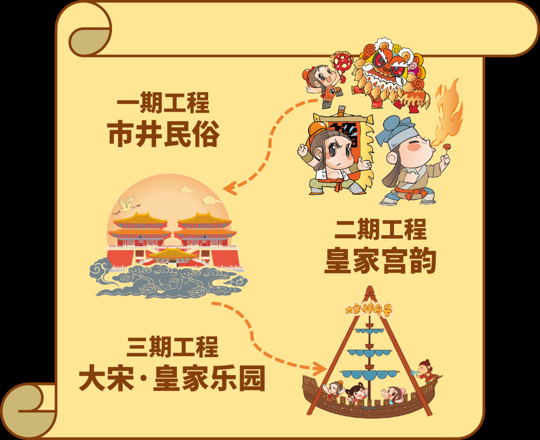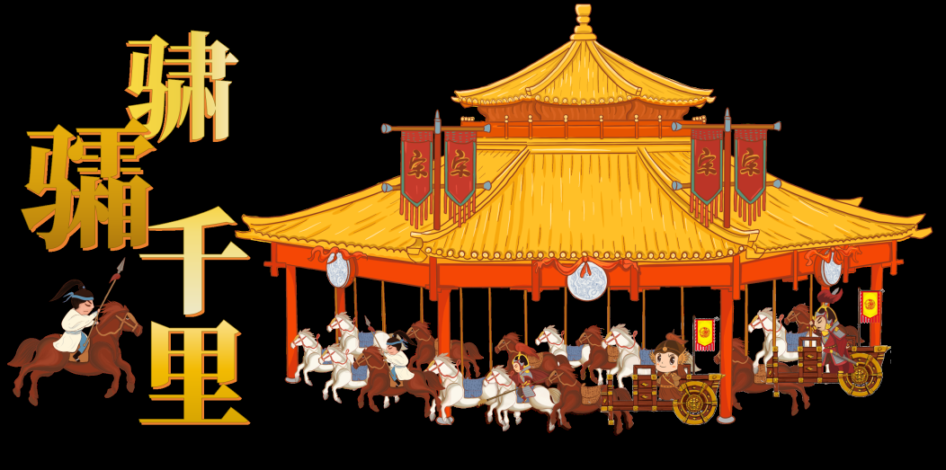 “骕骦千里”游樂項目,將打造全球最大的豪華轉馬設備,108人座以跳躍起伏為主的游樂坐騎,整體風格采用宋代的建筑元素,內(nèi)設環(huán)繞千里江山圖的壯麗畫面,轉馬一邊繞中柱旋轉,一邊上下浮動,讓乘客仿佛乘坐在駿馬之上,奔跑在延綿千里的壯闊江山中!