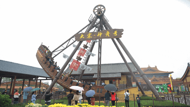 “龍騰鼓舞”游樂設施,增加了宋代擊鼓元素,伴隨音樂節(jié)奏,動感十足,讓游客擁有騰云駕霧的沉浸體驗,體驗高速滑行和舞動旋轉的雙重刺激。