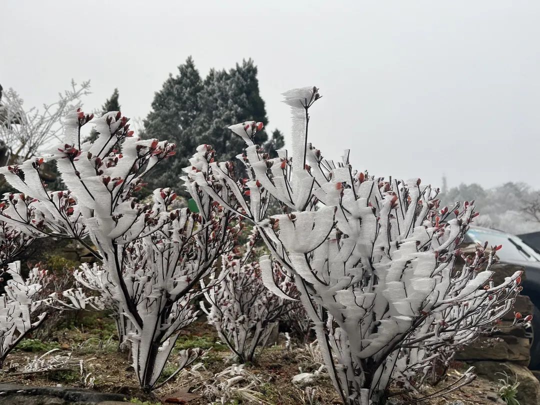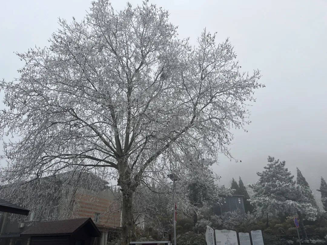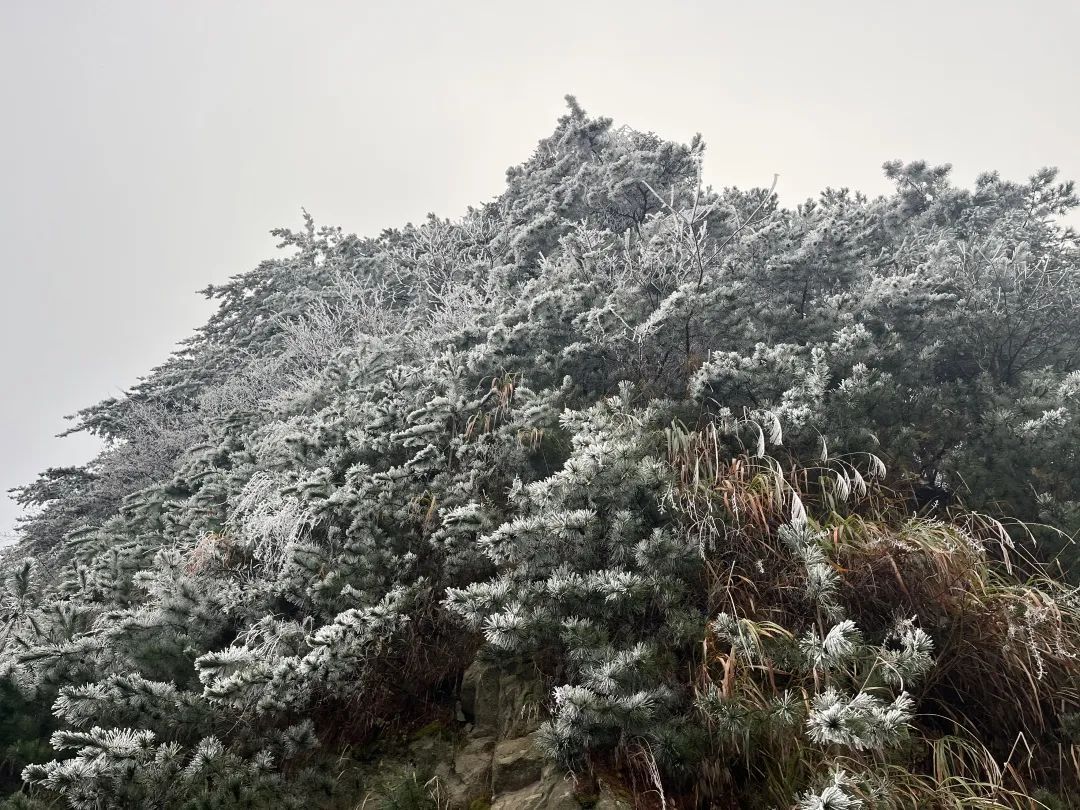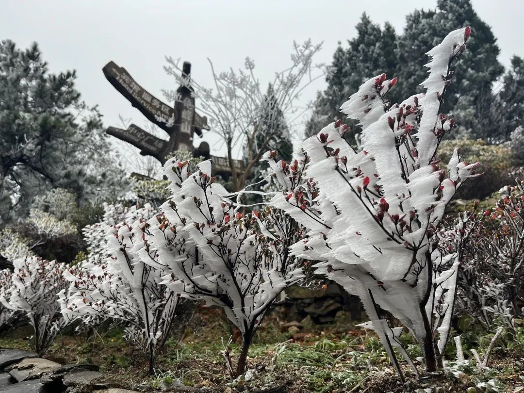 荊楚網(wǎng)(湖北日?qǐng)?bào)網(wǎng))訊(通訊員尹杰)濃霜中夜零,千林成霧凇。隨著氣溫的下降,龜峰山景區(qū)現(xiàn)霧凇奇觀。冰雕玉砌、晶瑩閃爍,霧凇綴滿(mǎn)枝頭,云霧籠罩下開(kāi)啟仙境模式。