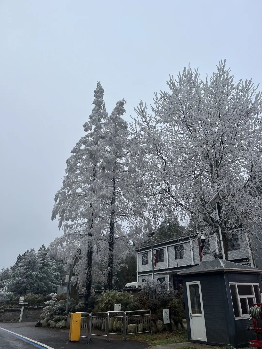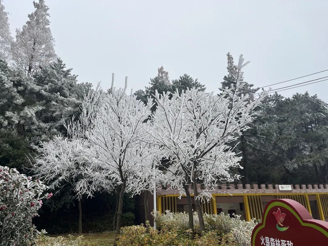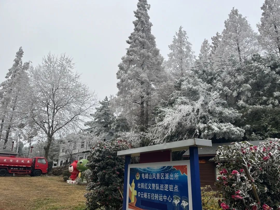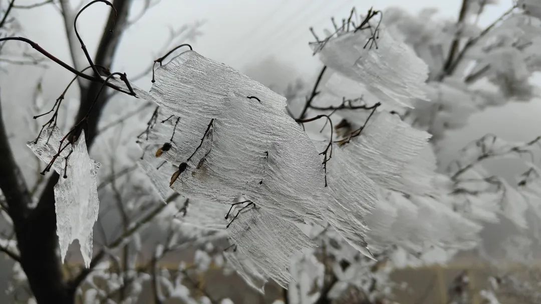 荊楚網(wǎng)(湖北日?qǐng)?bào)網(wǎng))訊(通訊員尹杰)濃霜中夜零,千林成霧凇。隨著氣溫的下降,龜峰山景區(qū)現(xiàn)霧凇奇觀。冰雕玉砌、晶瑩閃爍,霧凇綴滿(mǎn)枝頭,云霧籠罩下開(kāi)啟仙境模式。