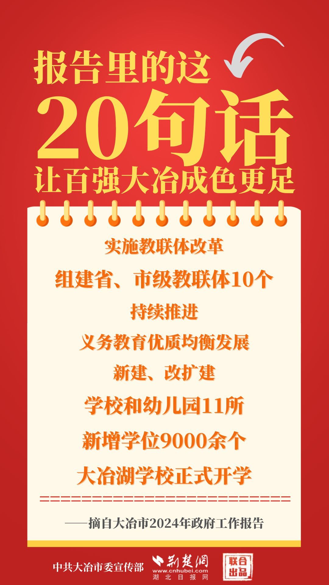 1月12日,大冶市第七屆人民代表大會第四次會議開幕,大冶市委副書記、市長孫輒作政府工作報(bào)告。報(bào)告里的這20句話,讓百強(qiáng)大冶成色更足。