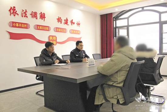 “大家都是鄰居,快過年了,希望大家能夠以和為貴、相互理解……”早上八點半,剛進門,就看到所長丁建勛在給群眾做調(diào)解。
