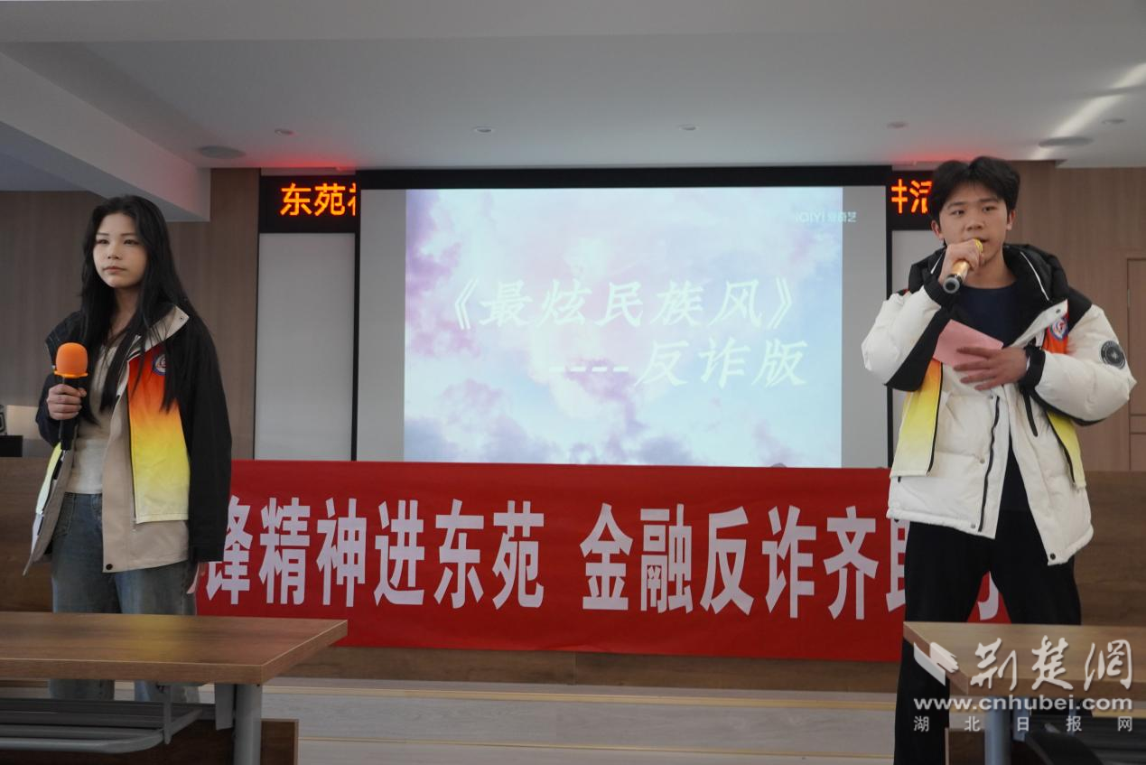 9時整,由湖北工程學院宣講隊帶來的《最炫民族風——反詐版》節(jié)目在激昂的旋律中開始了,為活動拉開序幕。節(jié)目結束之后,志愿者們還帶領居民們學習了《防電詐小口訣》,通過播放提前準備好的反詐PPT,展示經典詐騙案例與新型詐騙案例,披露詐騙常用話術,傳授應對詐騙的知識,幫助社區(qū)居民筑牢反詐“防護網”,守好“錢袋子”。