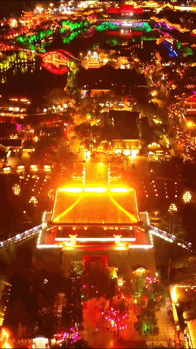 夜晚的大宋不夜城百萬盞花燈亮起,