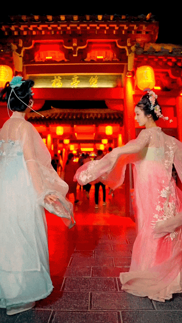 在精美華燈的照耀下宋裝更加美麗!