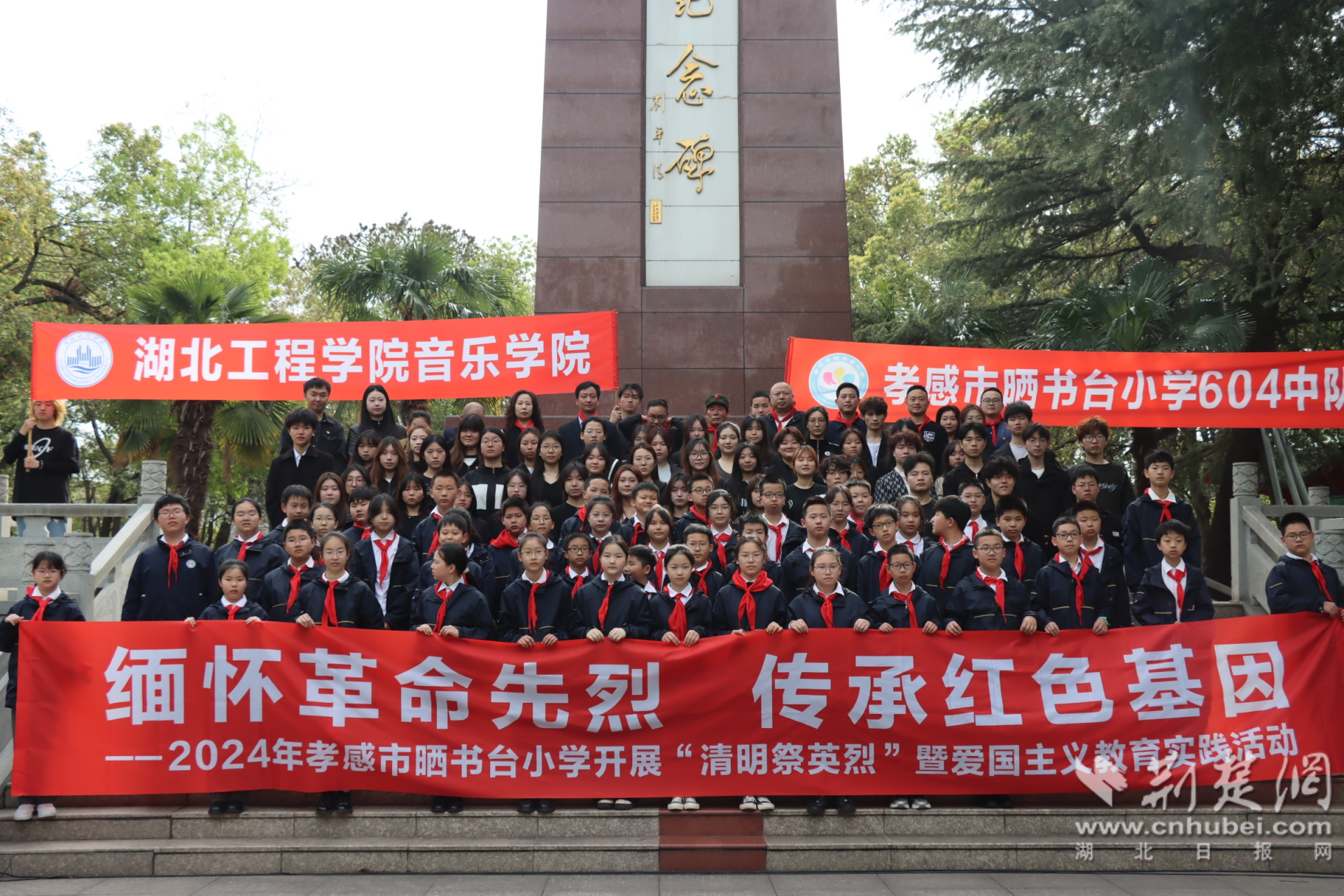 荊楚網(wǎng)(湖北日?qǐng)?bào)網(wǎng))訊(通訊員唐霄 黃洲 許曉悅)為了全力推進(jìn)傳承紅色基因與落實(shí)立德樹(shù)人深度融合,弘揚(yáng)民族精神和愛(ài)國(guó)主義精神,切實(shí)發(fā)揮“思政課程”和“課程思政”協(xié)同作用,著力構(gòu)建“大中小思政一體化”育人格局。4月1日,湖北工程學(xué)院音樂(lè)學(xué)院與孝感市曬書(shū)臺(tái)小學(xué)聯(lián)合開(kāi)展“緬懷革命先烈,爭(zhēng)做時(shí)代先鋒”為主題的清明祭掃活動(dòng)。
