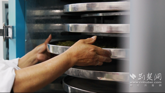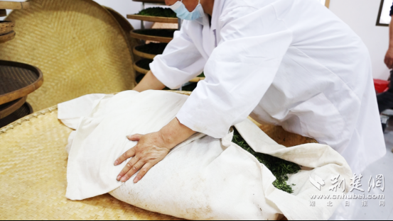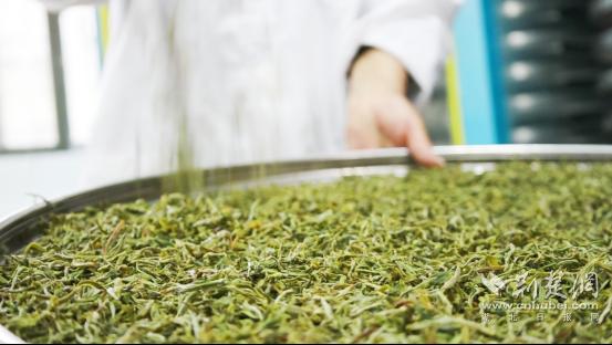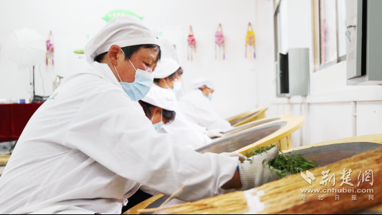 一進(jìn)入湖北紅綠黃茶業(yè)有限公司的生產(chǎn)車間,清冽的茶香撲鼻而來(lái),工人們有條不紊地炒茶、悶茶。屋外,三兩茶農(nóng)正與公司負(fù)責(zé)人交接鮮葉,一派繁忙景象。